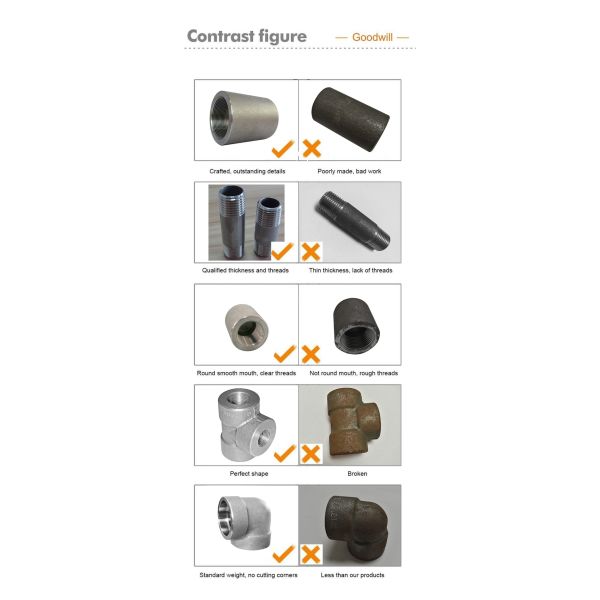 1. Forged Fittings Type: Elbow, cross, street elbow, tee, coupling, half coupling, cap, plug, bushing, union, outlet,